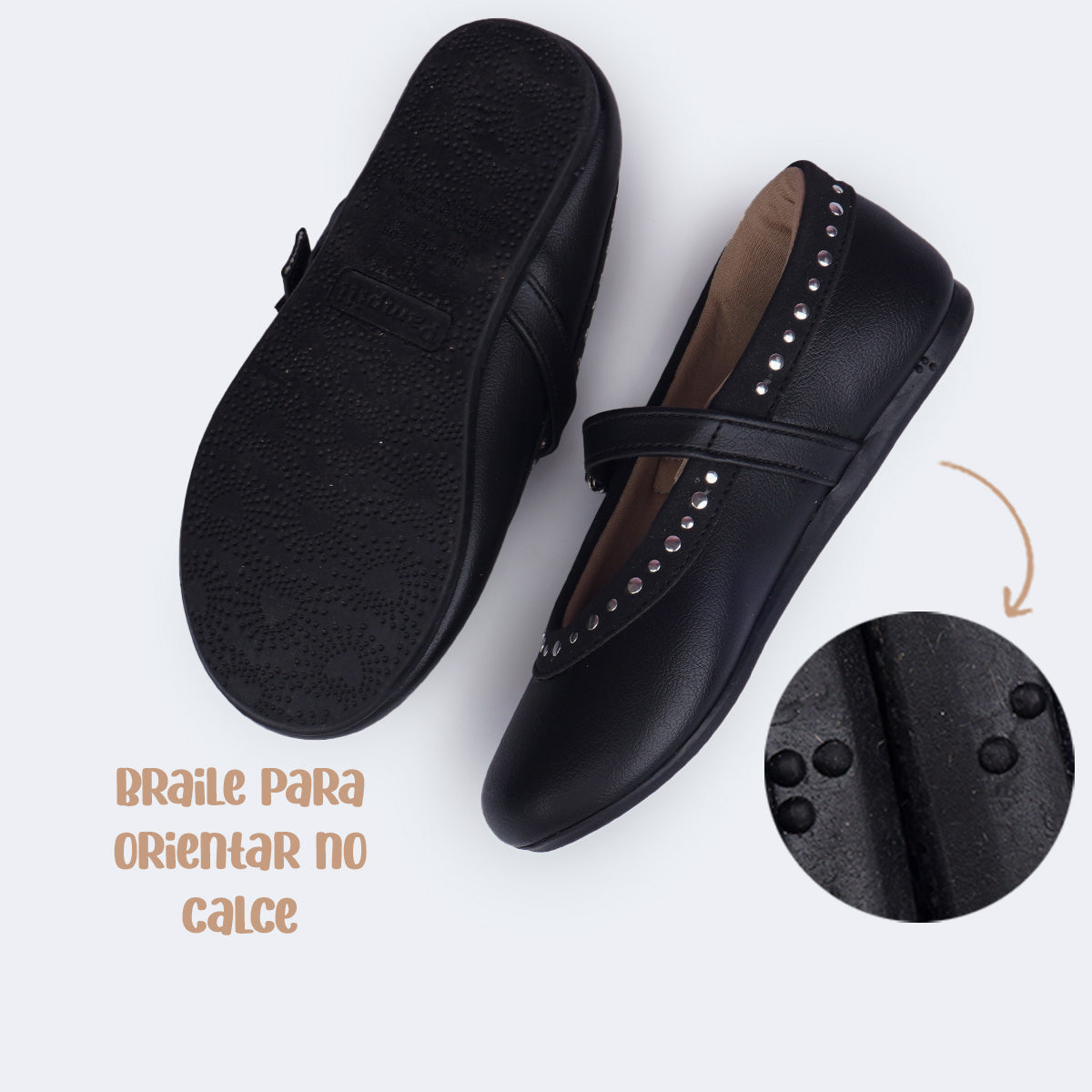 Pensada para acompanhar a rotina, essa sapatilha de boneca tem calcanhar almofadado, forro macio com espuma e absorção do suor, além de palmilha anatômica para mais conforto. Para completar, o solado antiderrapante inclui marcação em braile que orienta o calce, reforçando a tecnologia e o cuidado da marca com a autonomia das meninas.