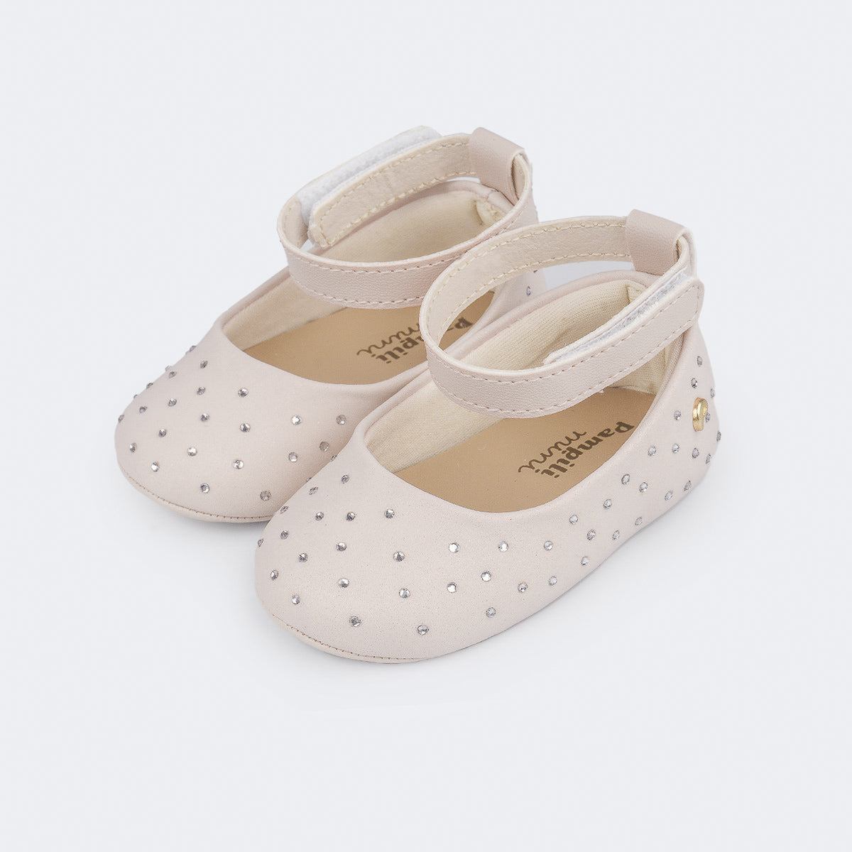 Delicado e cheio de brilho, esse sapatinho infantil rosa é uma verdadeira joia! Criado para proporcionar conforto e encanto, ele conta com strass aplicados por toda a superfície, garantindo um toque brilhante.