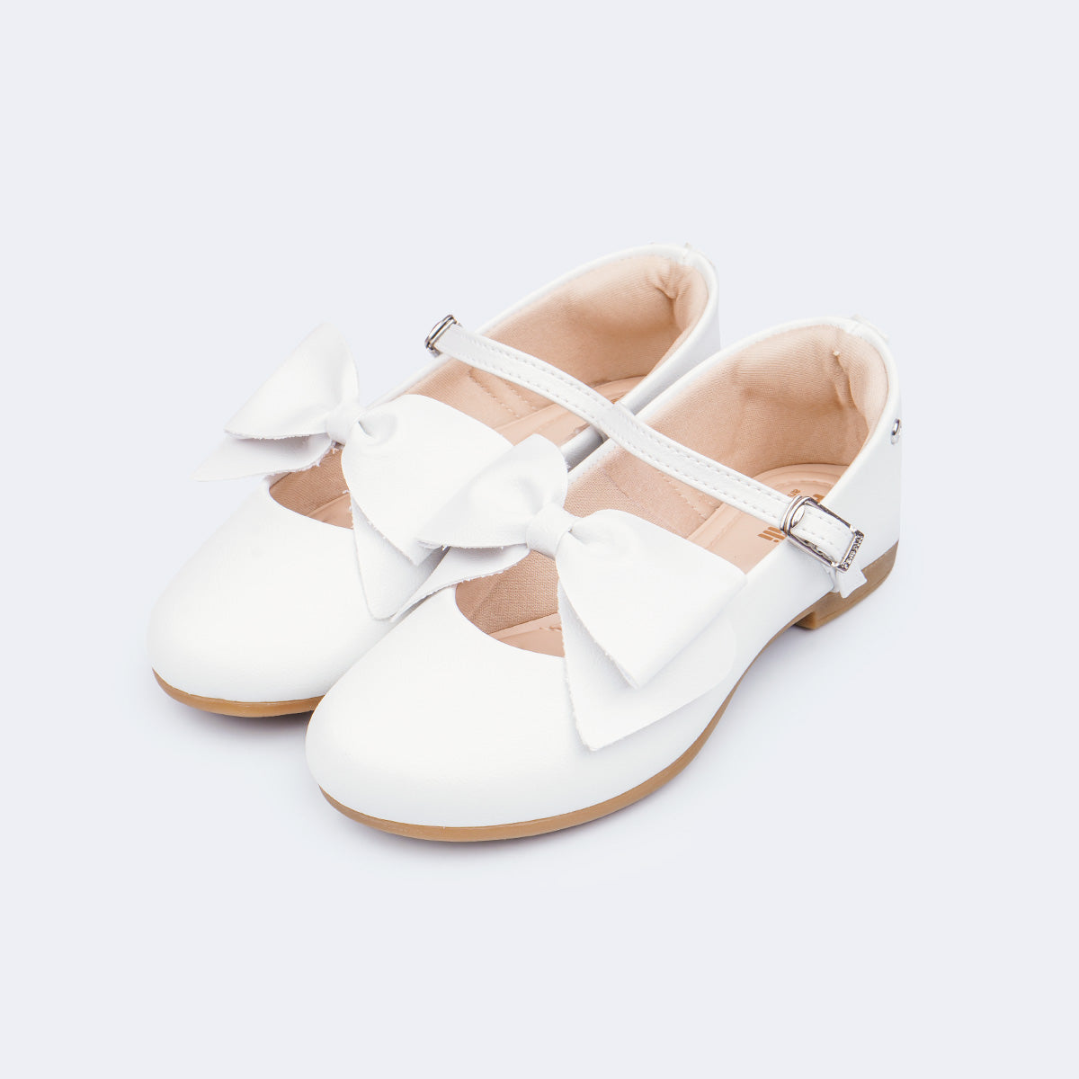 Clássico e charmoso, esse sapato branco infantil é perfeito para looks elegantes! O acabamento garante um visual sofisticado e moderno, enquanto o laço maxi frontal adiciona um ar romântico e cheio de personalidade.