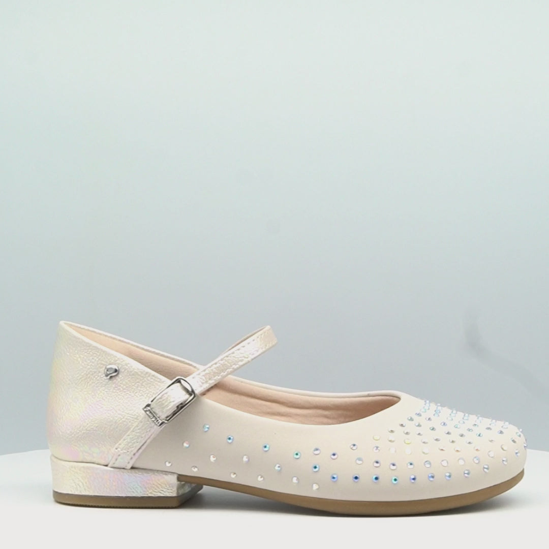 Com seu design atemporal e salto baixo de 1,5 cm, é o sapato perfeito para celebrações, apresentações ou momentos especiais que pedem um toque de elegância e delicadeza.