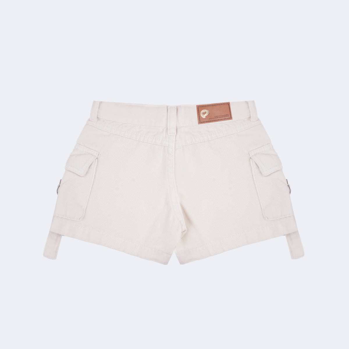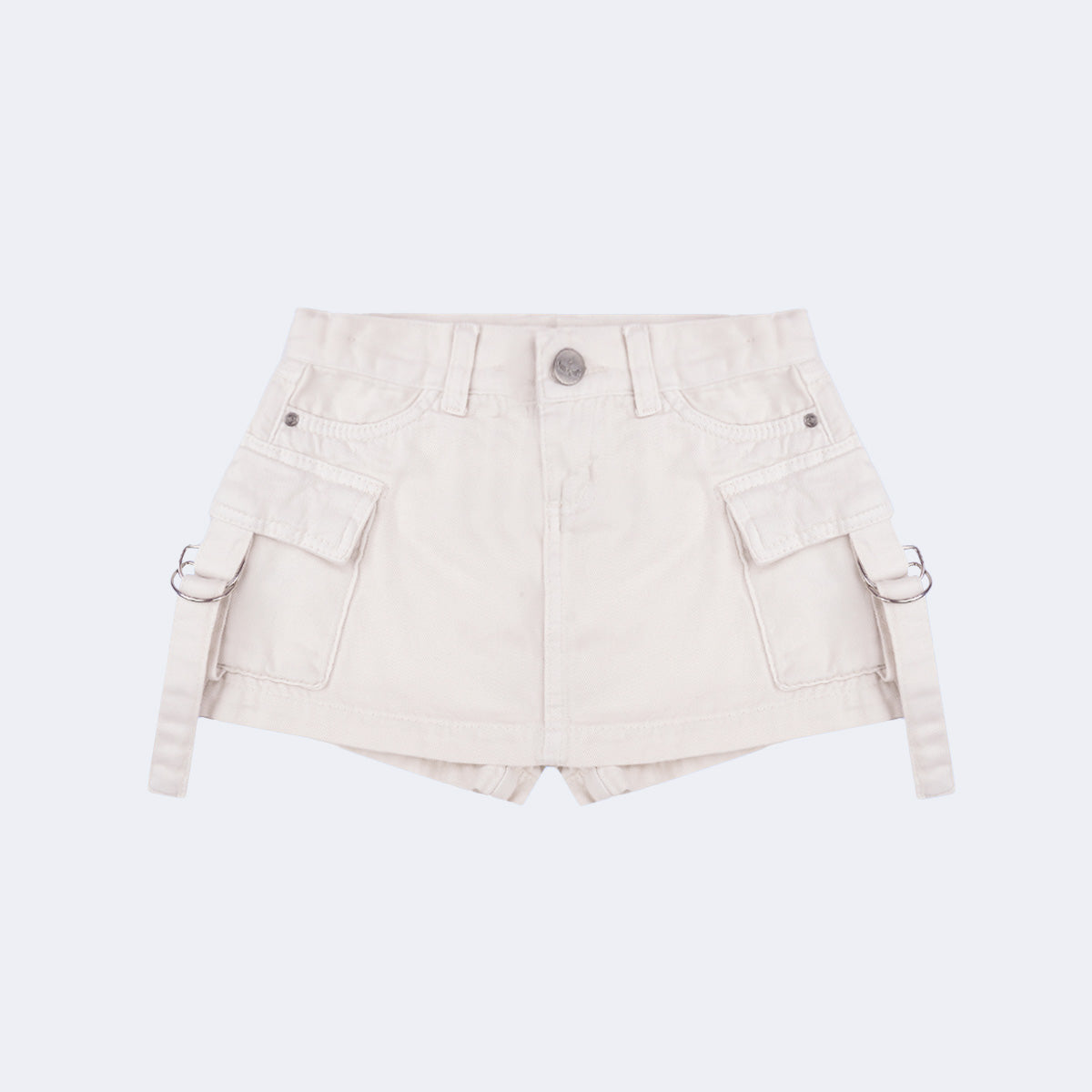 Short Saia Infantil Feminino Jeans Cargo Off White