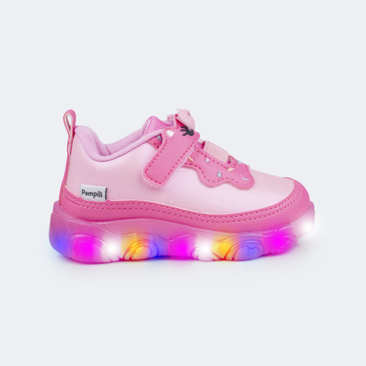 Aposte! Tênis colorido e lúdico, com show de luzes divertidas para sua menina brincar e se descobrir. Combine com roupas alegres, criando muitas possibilidades.