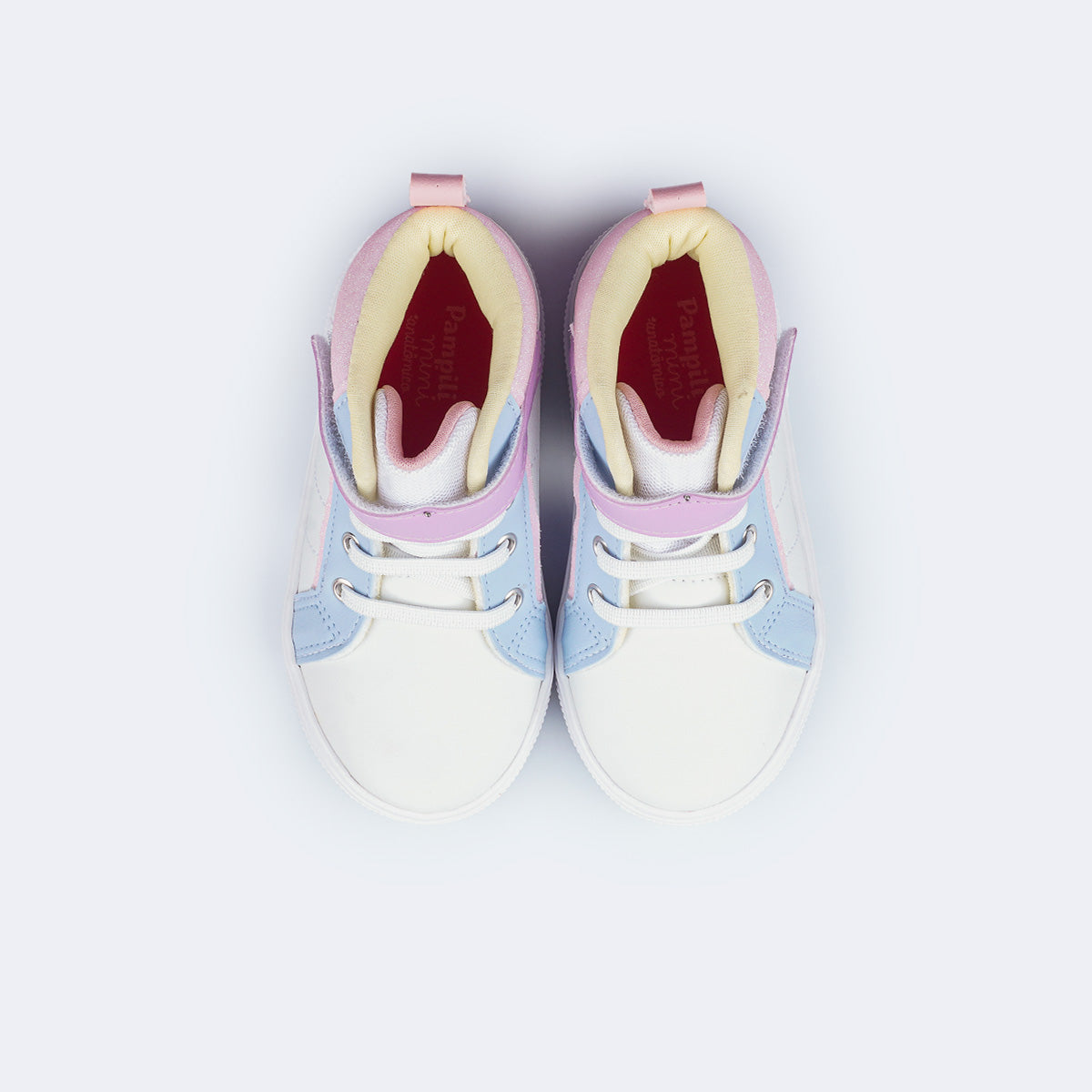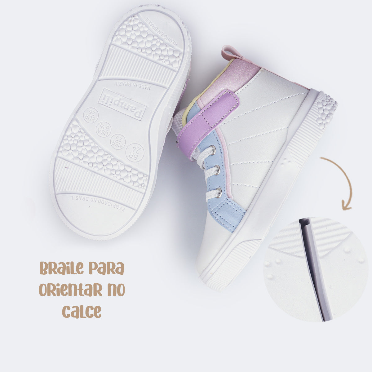 Tênis Cano Alto Infantil Pampili Yumi Branco Colorido