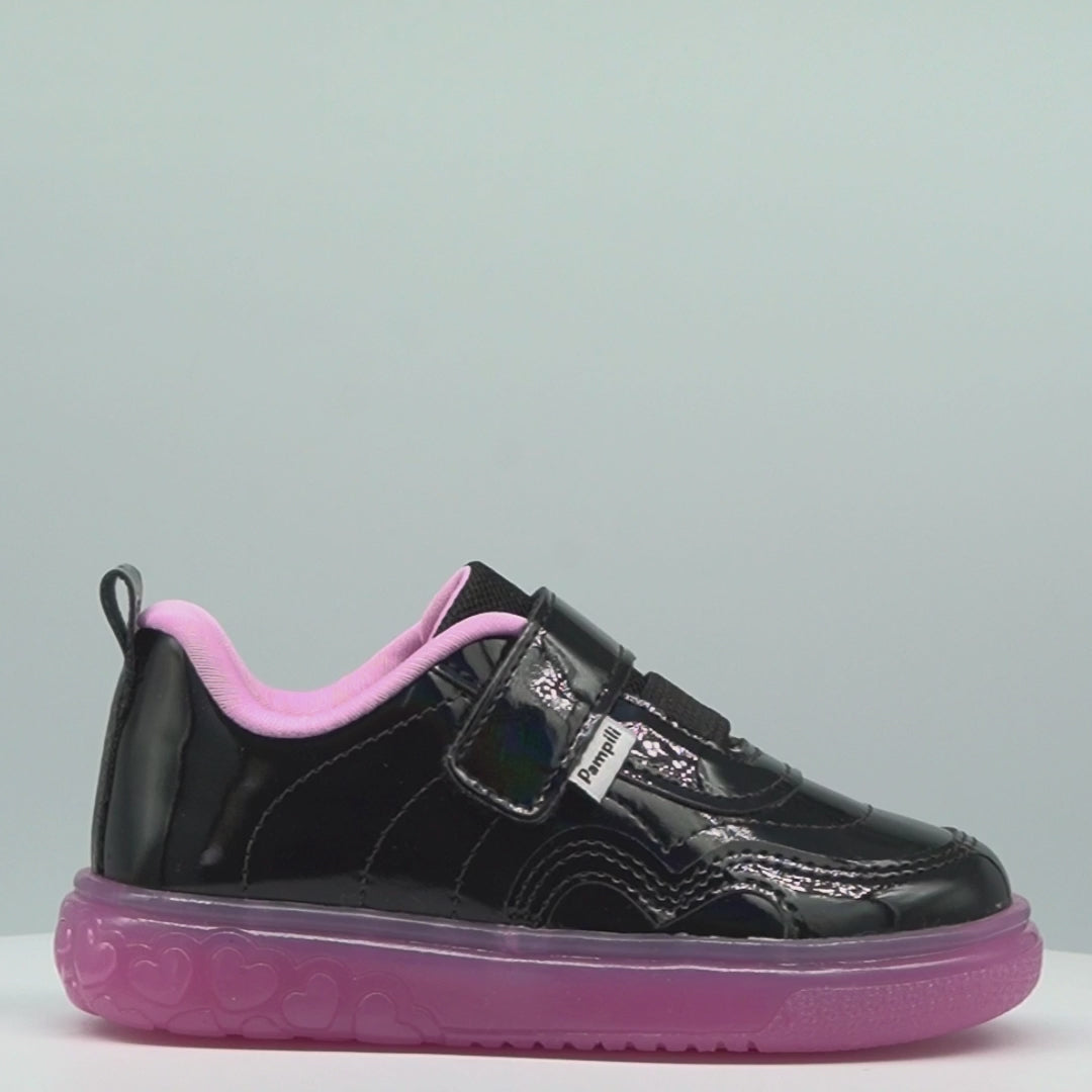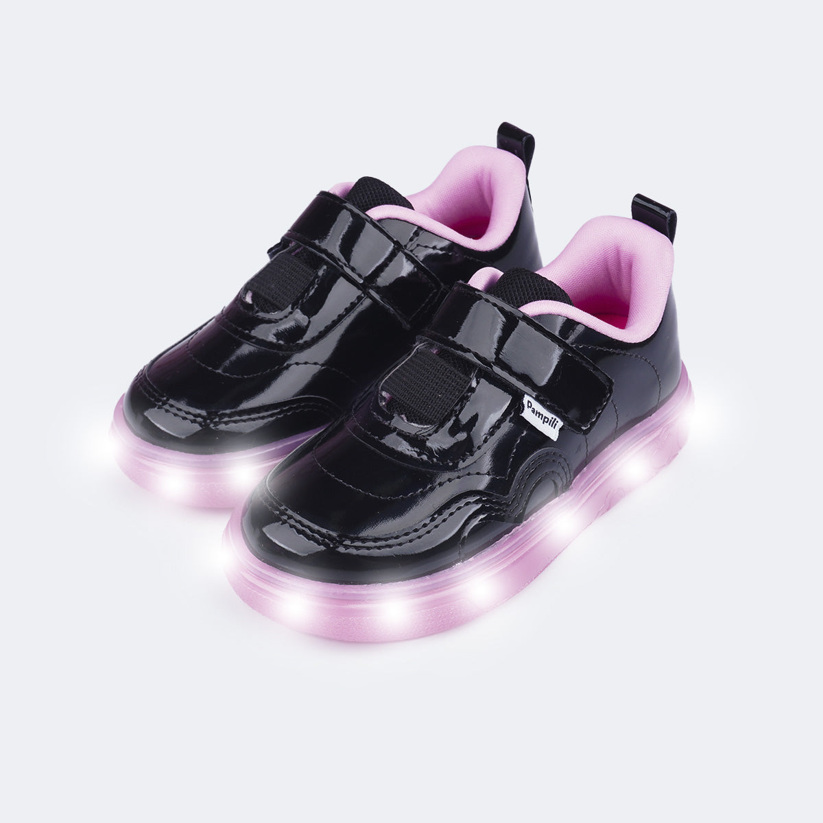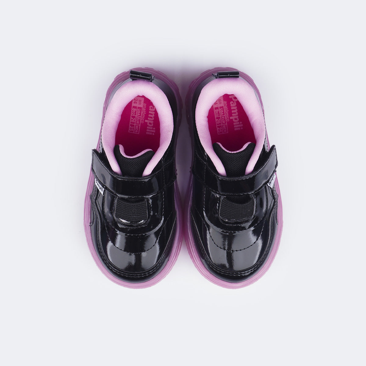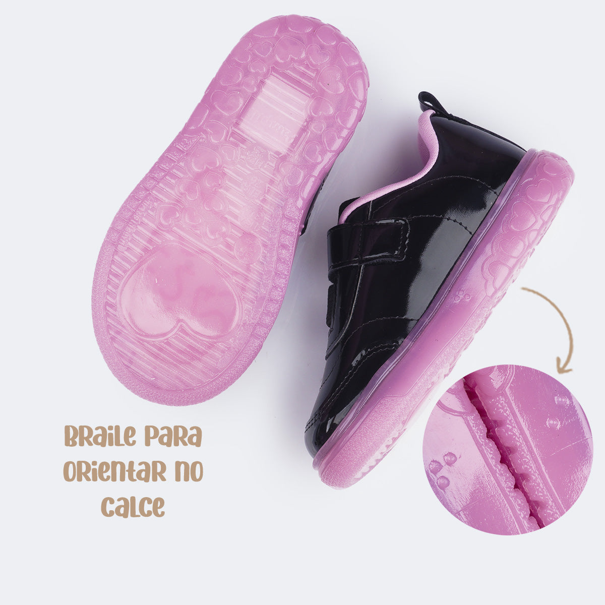 Delicado e cheio de estilo, esse tênis infantil feminino preto é perfeito para iluminar os looks das pequenas. Seu acabamento em verniz rosa adiciona um toque encantador, enquanto os fechos de contato e elástico proporcionam um calce fácil e prático para o dia a dia.