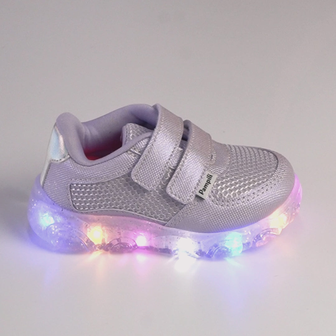 O tênis de LED lilás que vai conquistar as meninas, com material respirável e resistente, brilho suave e luzes coloridas que piscam a cada passo. Versátil, acompanha a rotina com leveza, conforto e um visual moderno