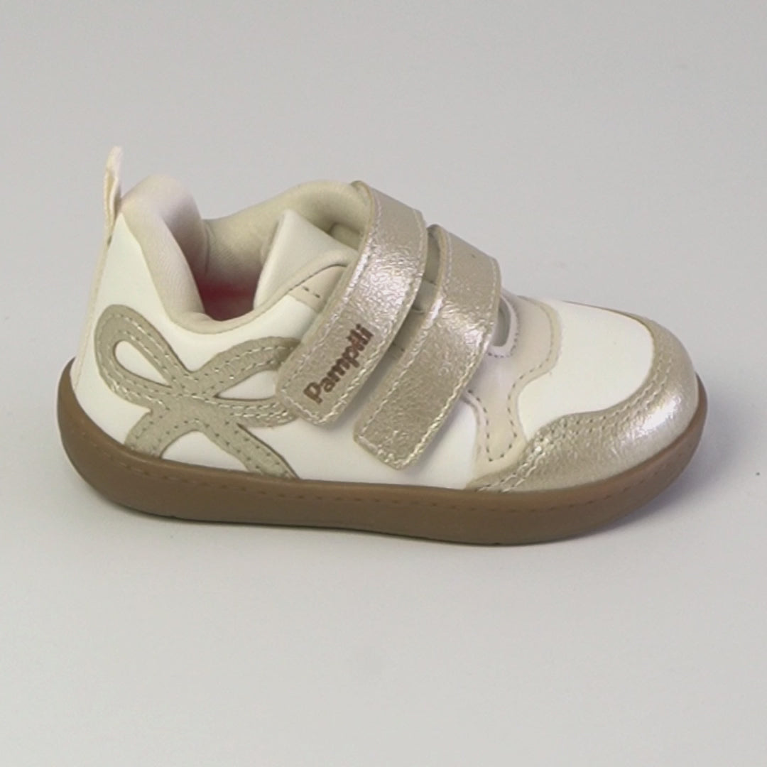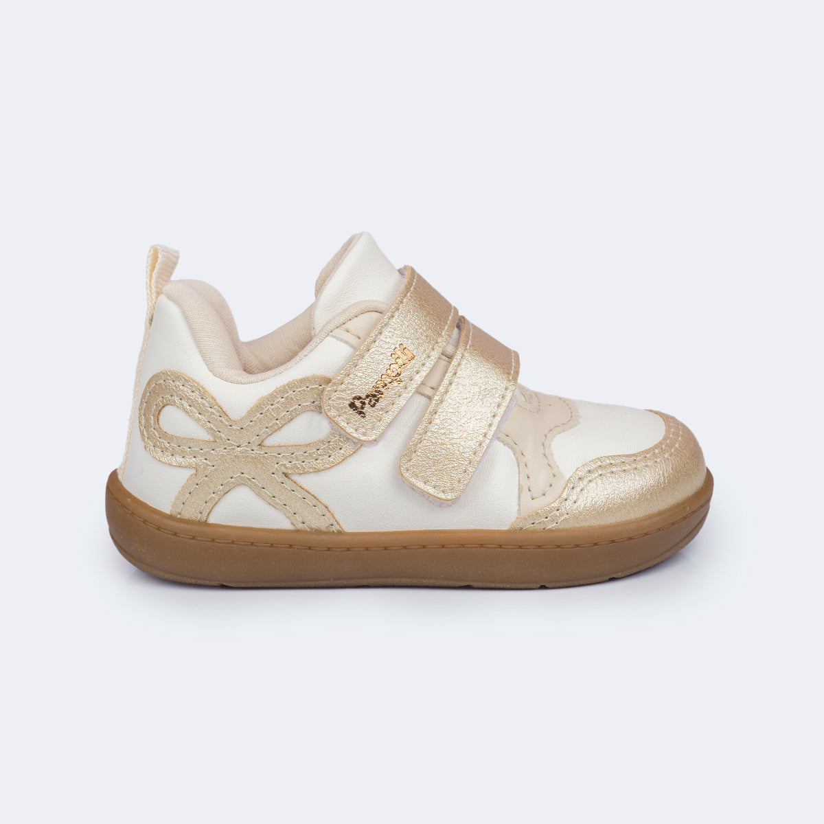 Tênis Infantil Feminino Pampili Sophie Laço Branco Dourado