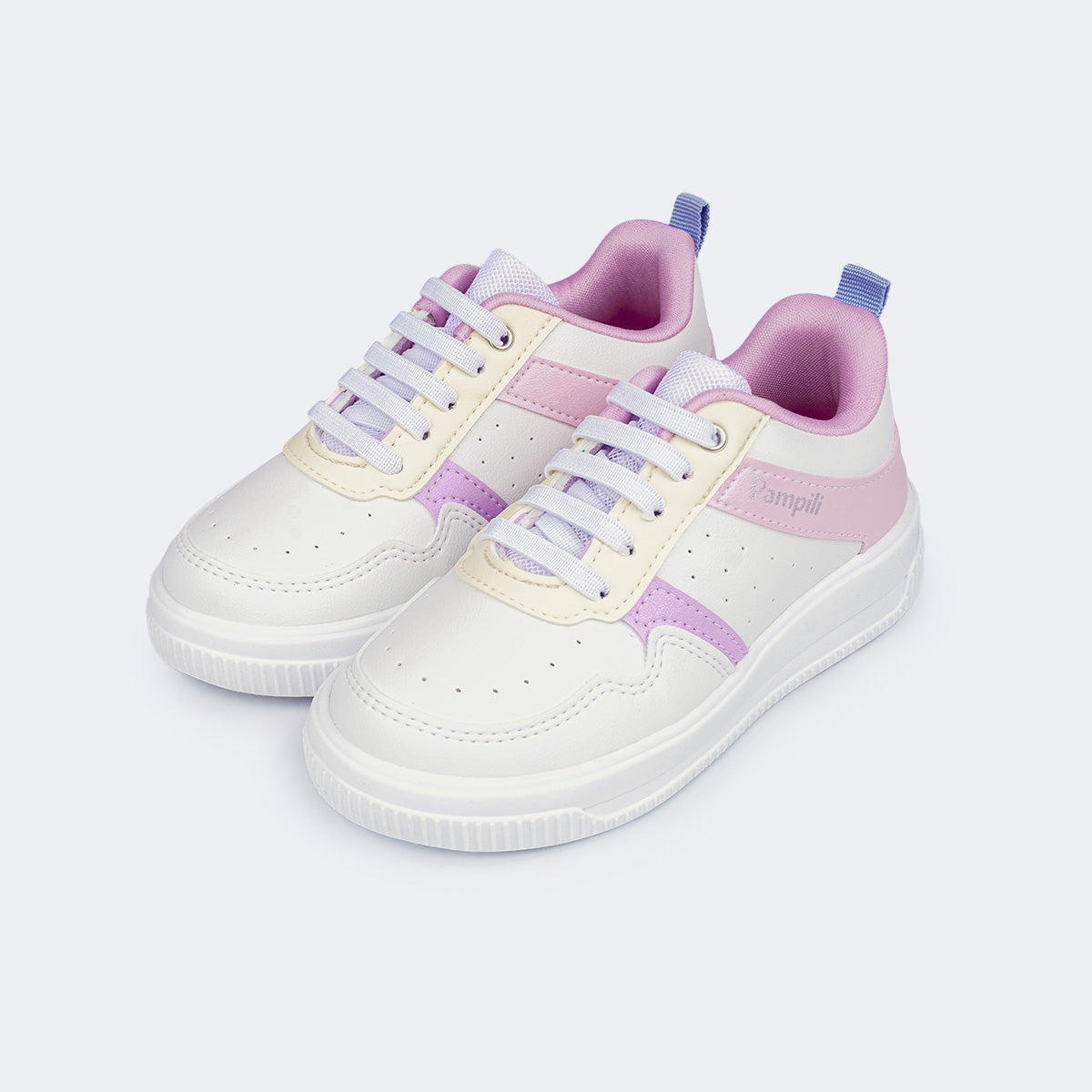 Tênis Infantil Feminino Pampili Up Recortes Branco Candy Color