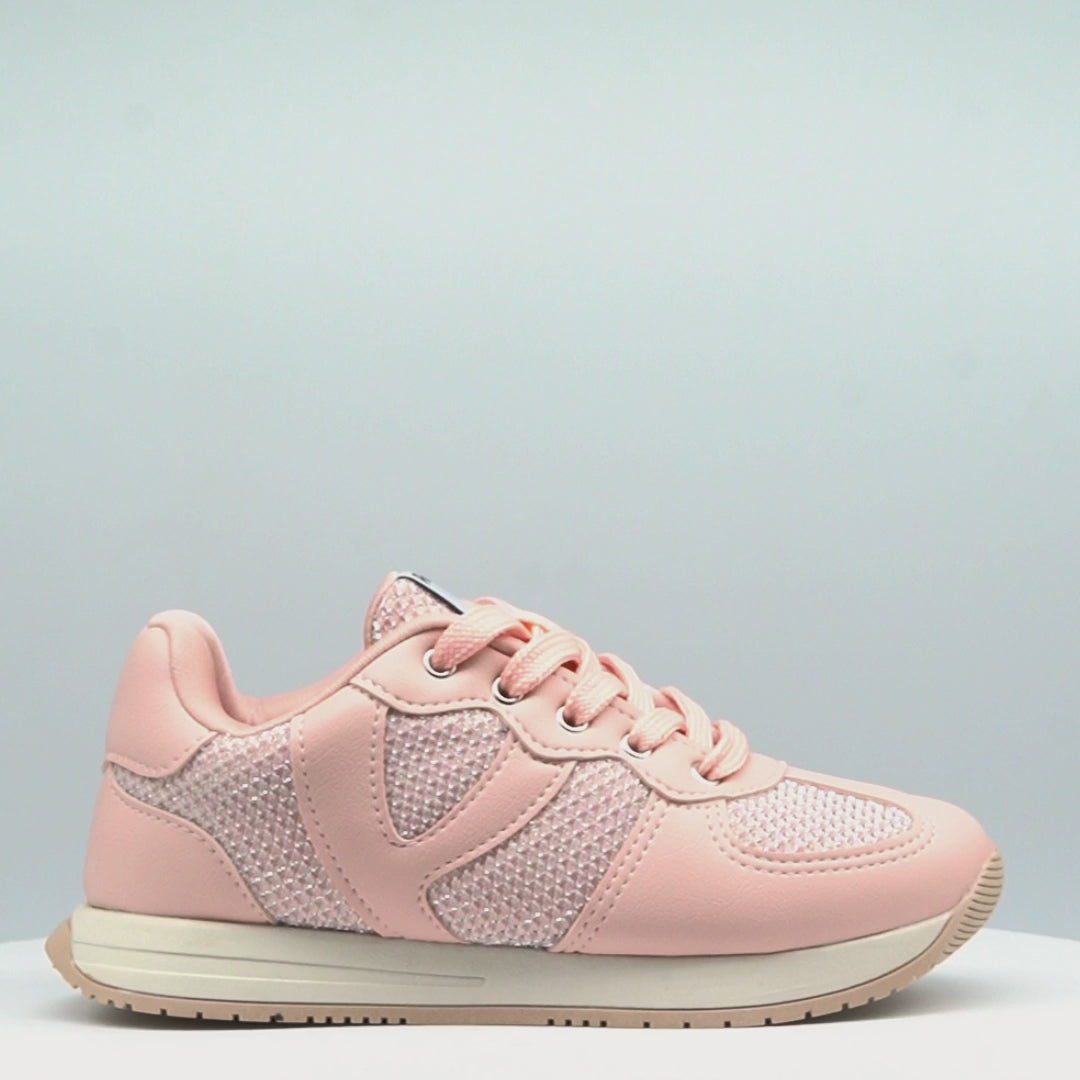 Inspirado nos clássicos tênis jogging retrôs, o modelo Zeal chega repaginado com design moderno com recortes em material rosado e fios de brilho, perfeito para meninas que amam estilo e conforto.