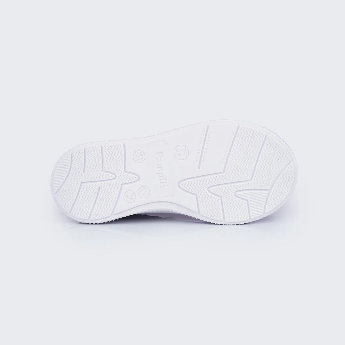 O cadarço dupla face, branco/prata com mini corações, permite duas formas de uso e oferece ajuste firme e personalizado. O forro com espuma absorvente mantém os pezinhos secos, e o material de fácil limpeza facilita a rotina. O modelo ainda conta com identificação em braile no solado, auxiliando meninas cegas ou com baixa visão a diferenciar o pé direito do esquerdo.