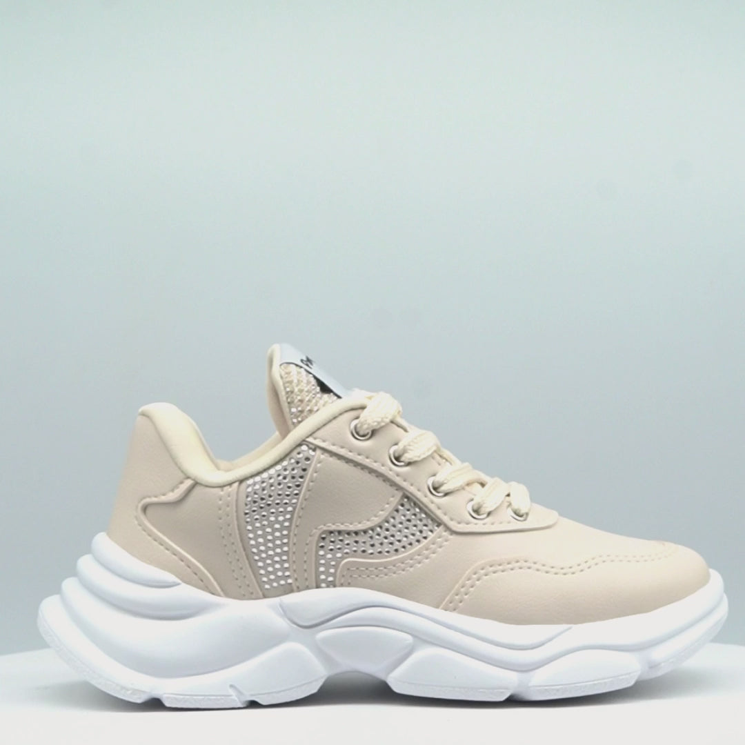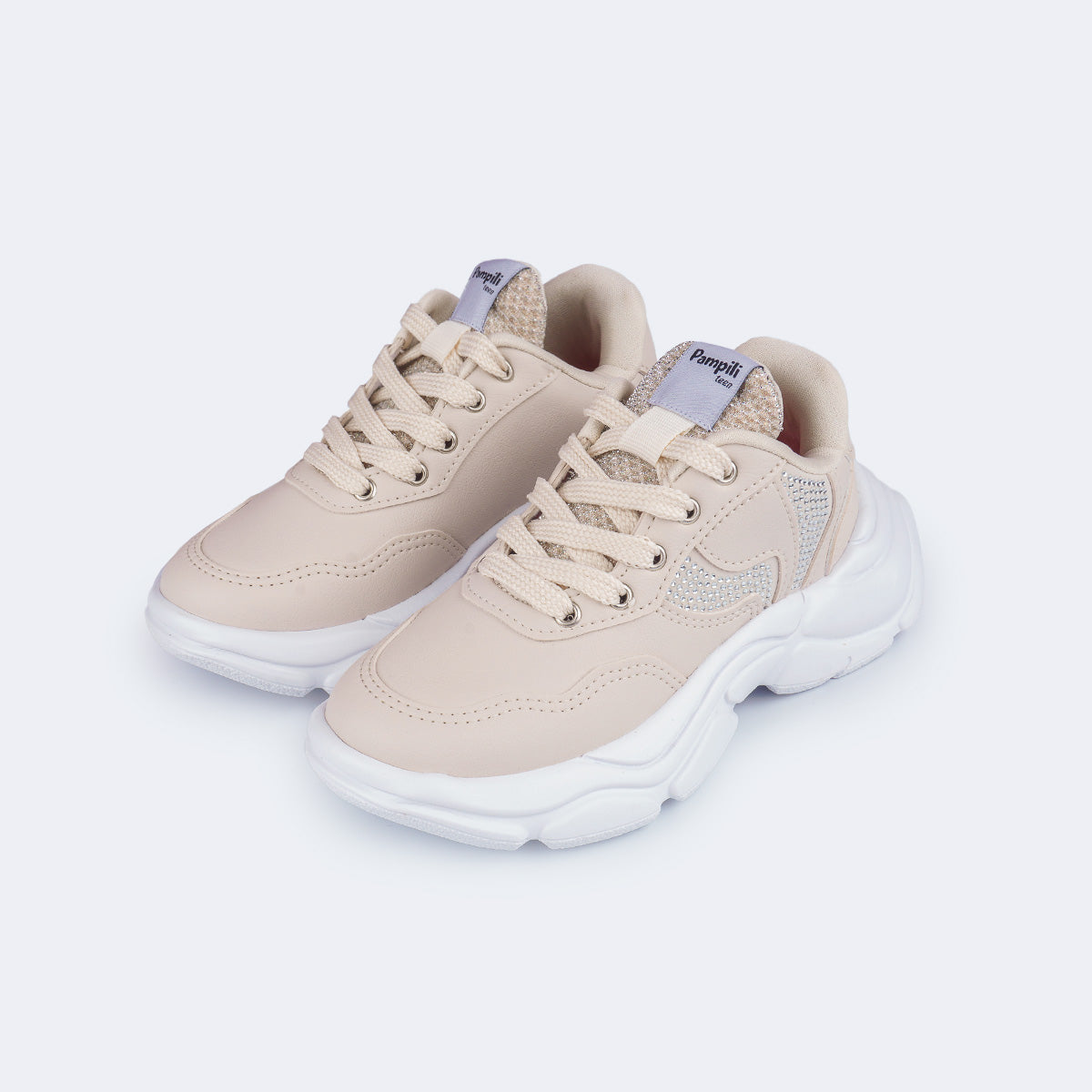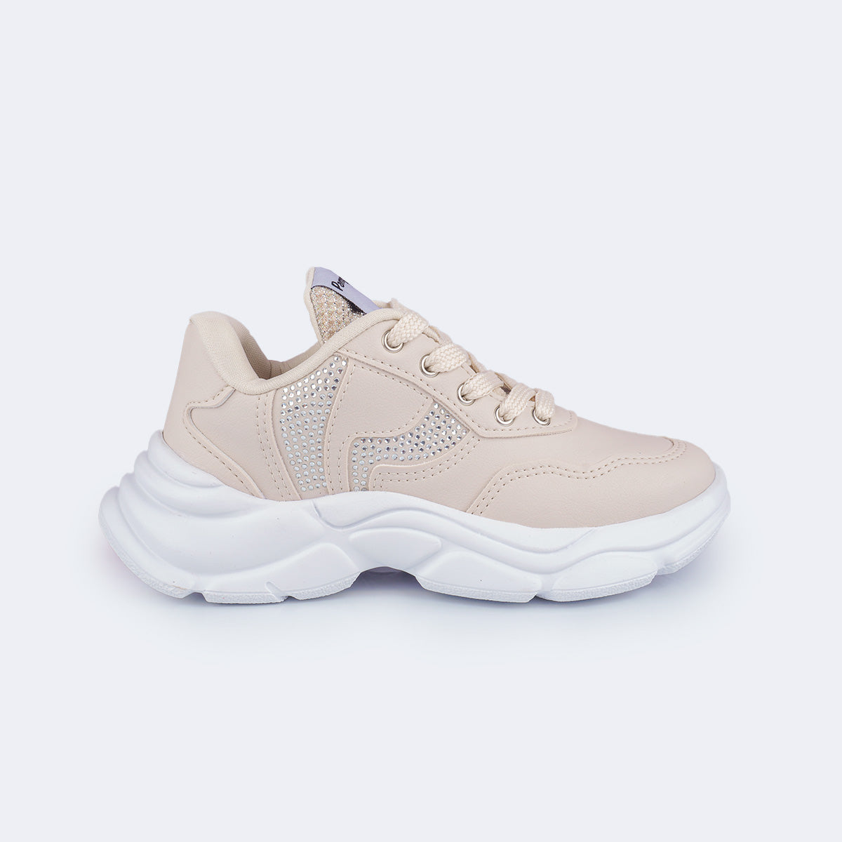 Tênis Infantil Feminino Winnie Recortes com Strass Nude