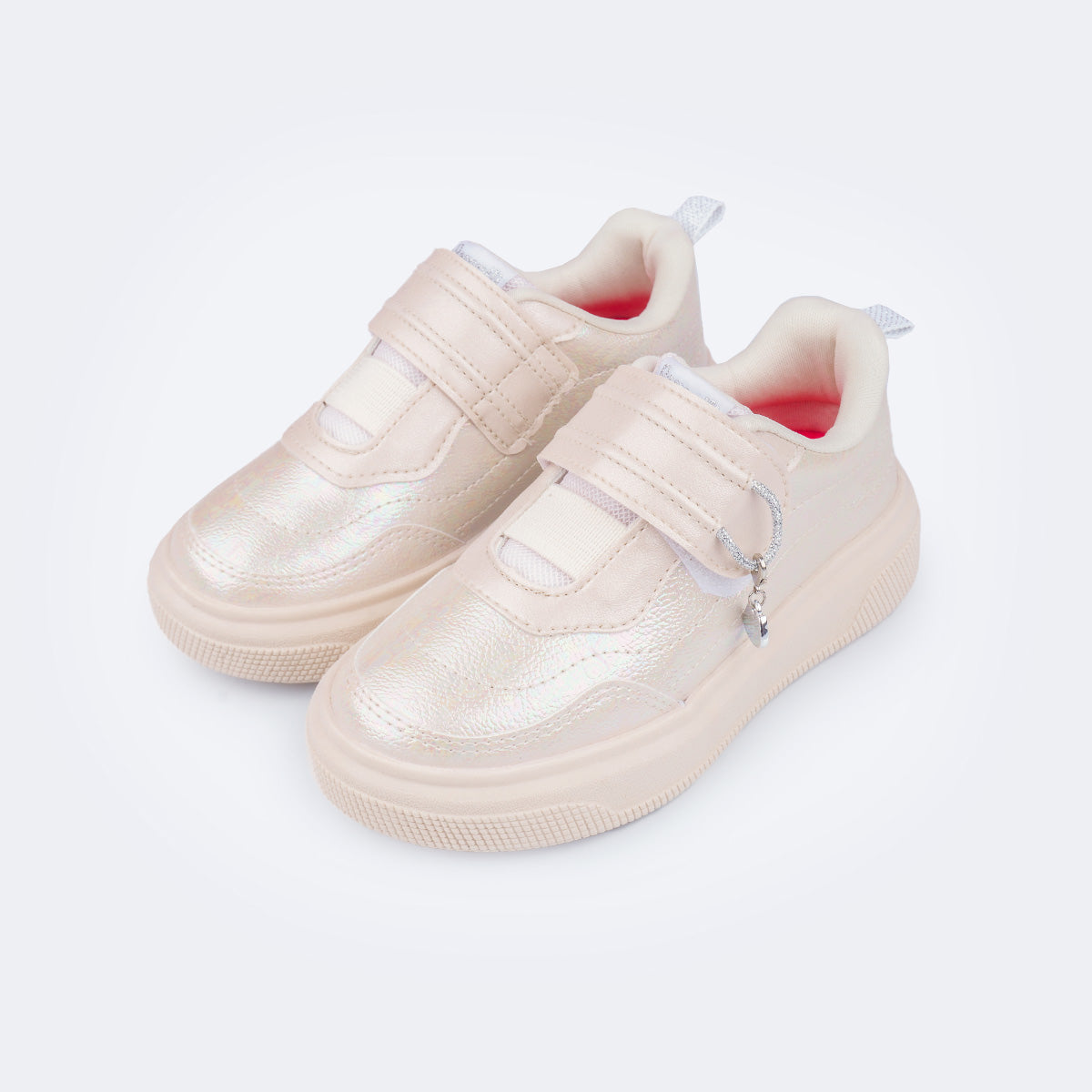 O tênis casual perfeito para meninas que amam personalizar o visual! Este modelo chega com acabamento perolado nude, trazendo um toque delicado e moderno ao look. E detalhe, o tênis acompanha dois pingentes de metal esmaltado, permitindo que as meninas deixem o calçado com a sua cara, personalizando com quiserem.