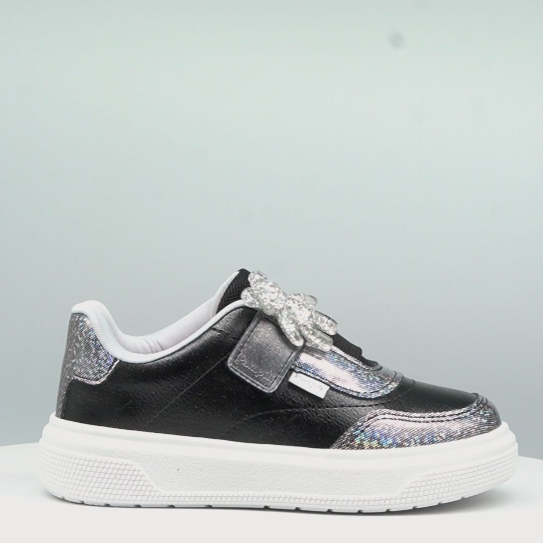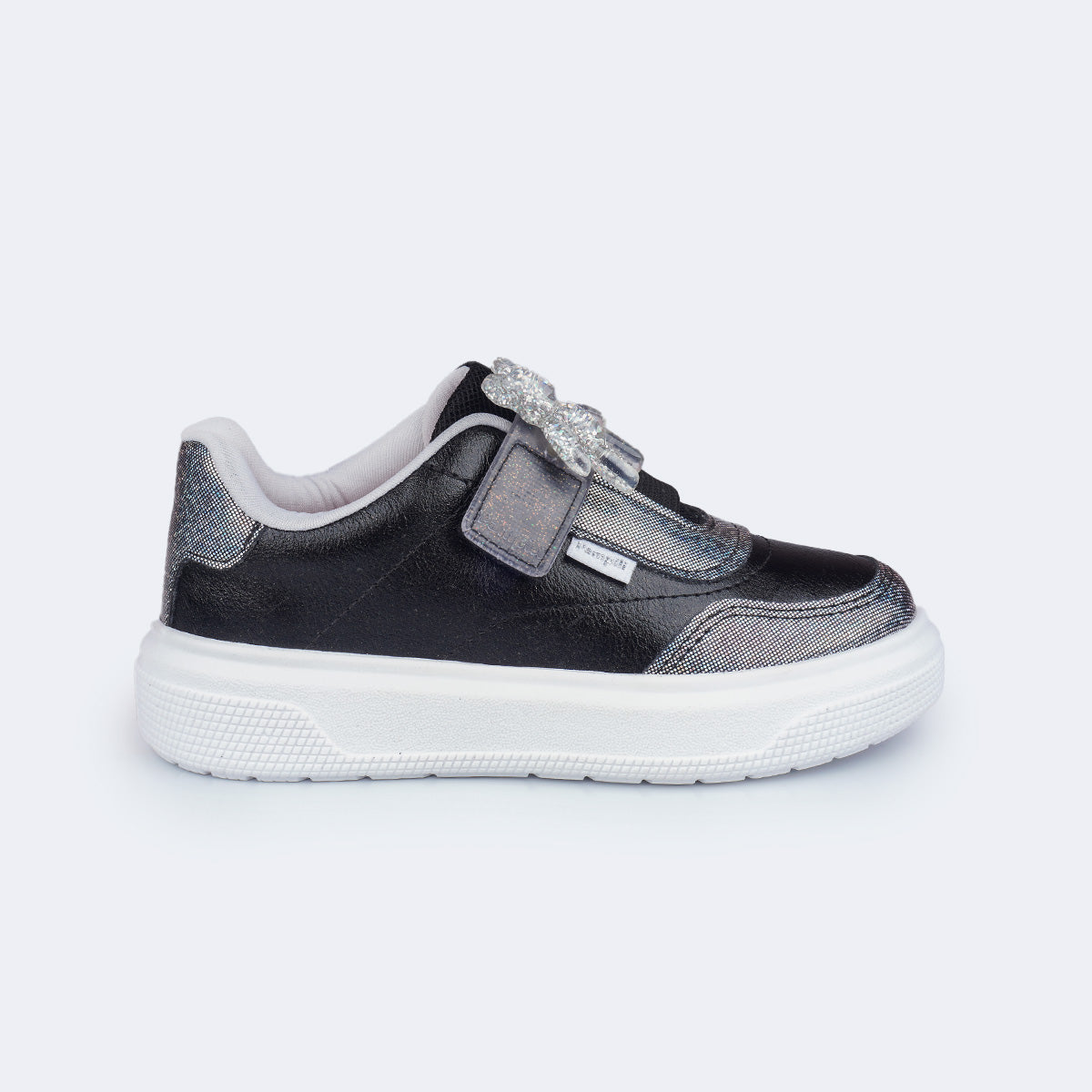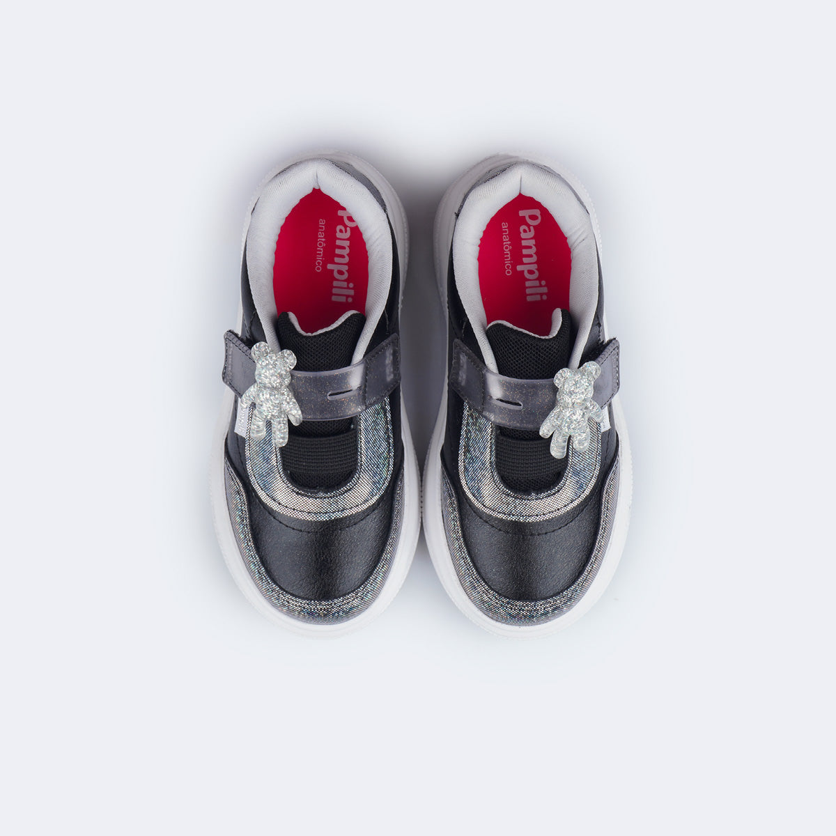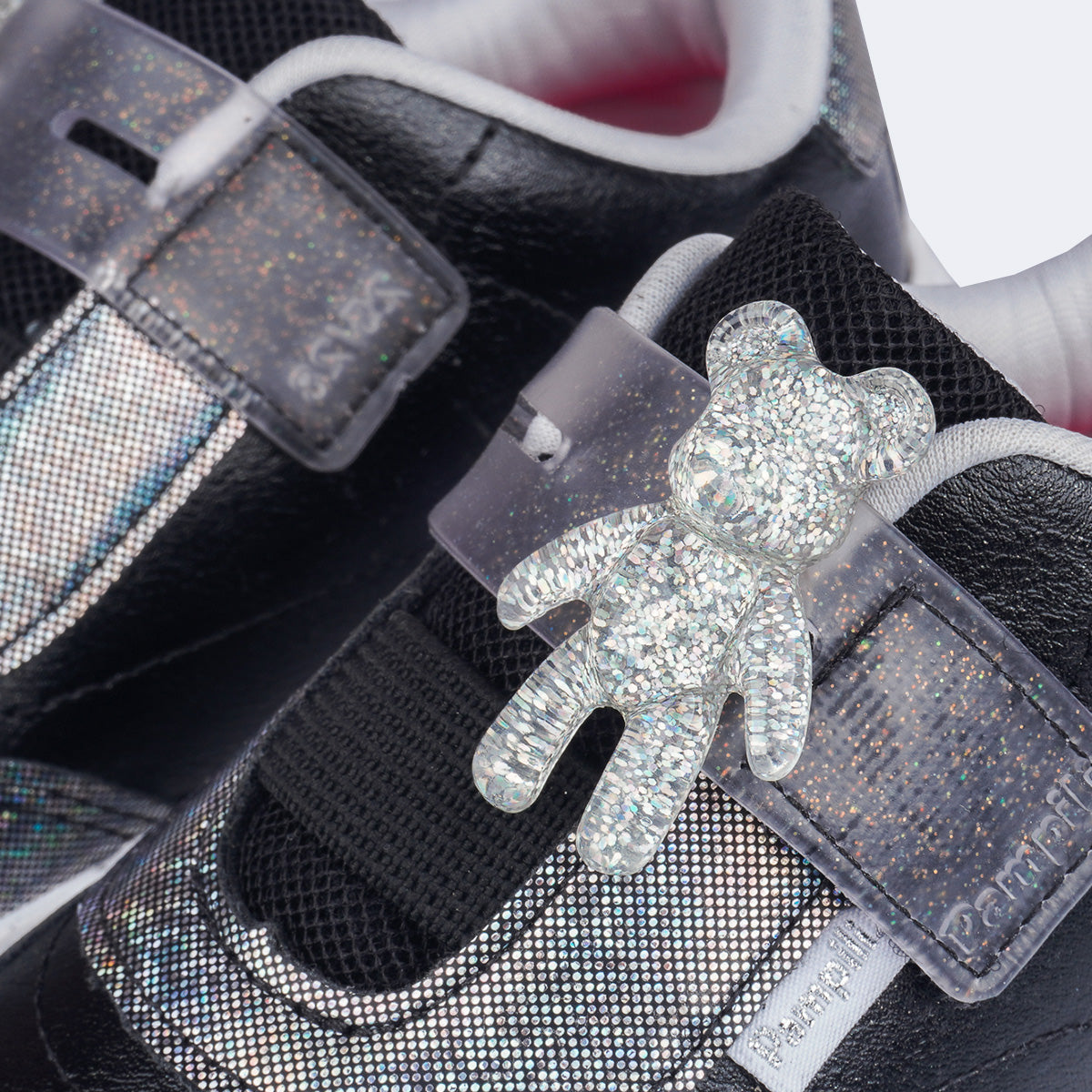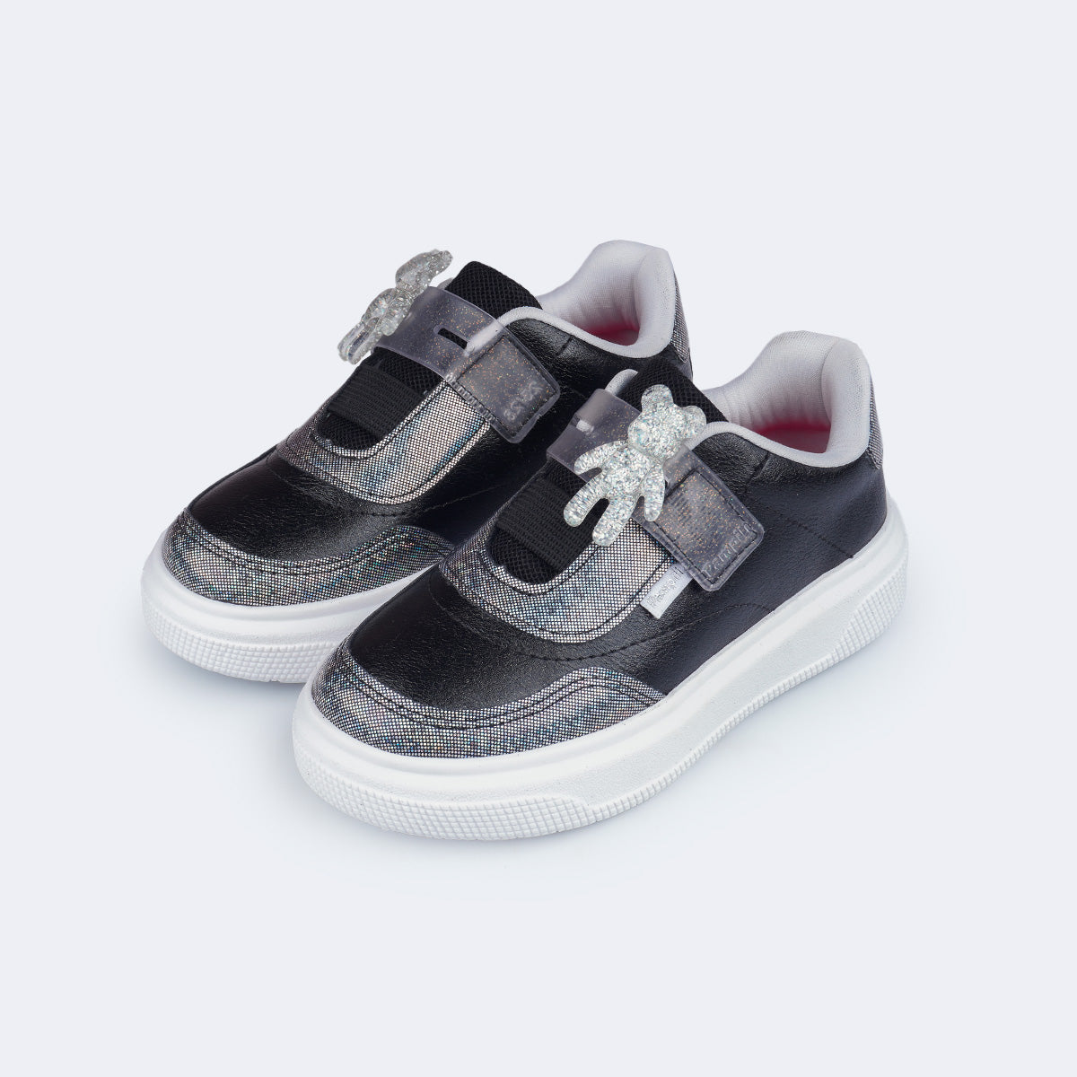 Encantador e moderno, este tênis infantil é o toque de moda que toda menina ama! O material com acabamento perolado preto ganha vida com o patch de acrílico em formato de ursinho transparente com glitter para customizar o tênis, tornando o visual divertido e cheio de estilo. O solado caixa com design atual garantem um visual contemporâneo, perfeito para acompanhar as meninas em todas as ocasiões.