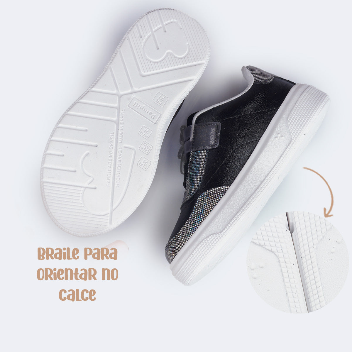 Com fecho de contato e elástico, o calce é prático e confortável. O forro com espuma macia e a palmilha anatômica em EVA oferecem bem-estar e leveza a cada passo. O solado com identificação em braile reforça a inclusão, completando o design pensado para o conforto e autonomia das meninas.