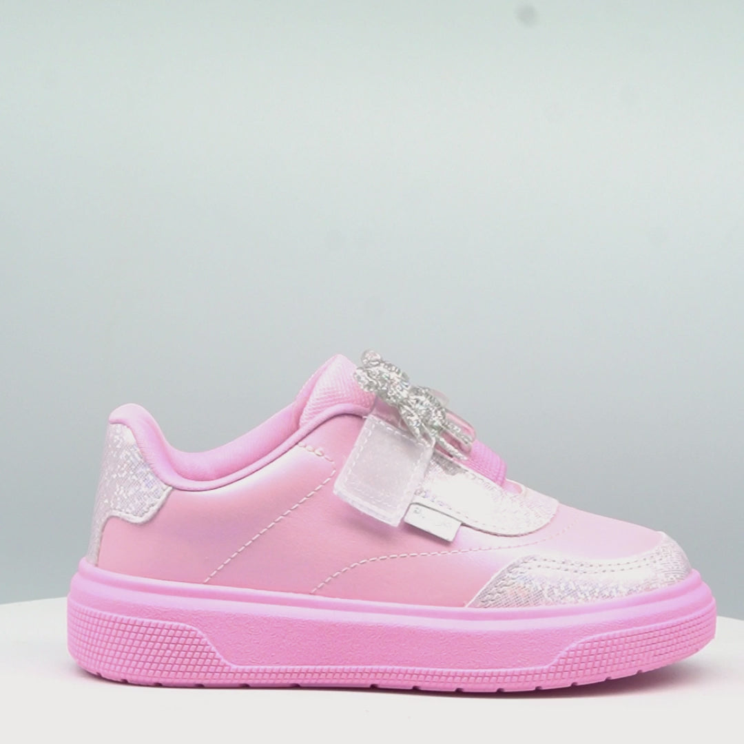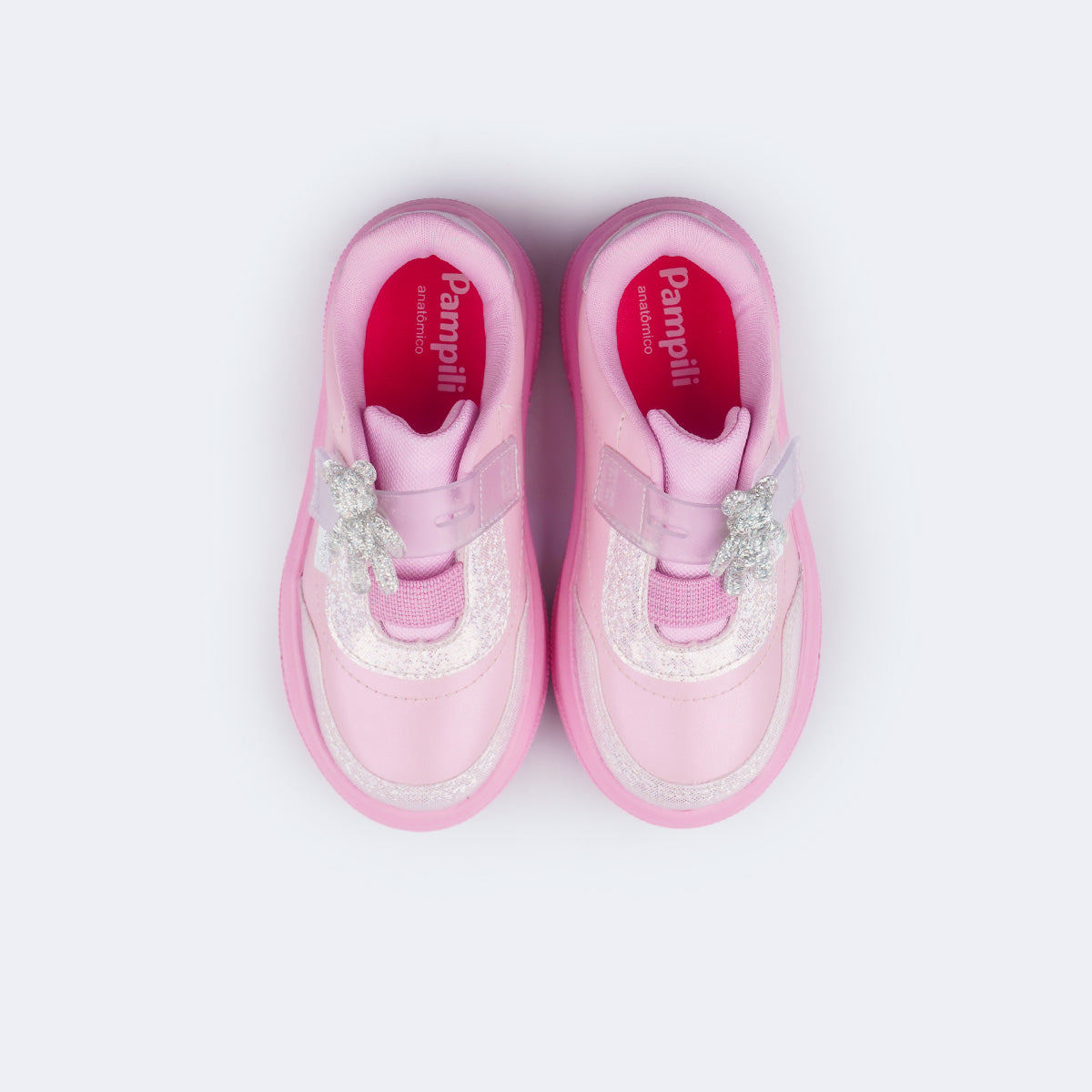 Encantador e moderno, este tênis infantil é o toque de moda que toda menina ama! O material com acabamento perolado em tom rosa ganha ainda mais vida com o patch de acrílico em formato de ursinho transparente com glitter para customizar o tênis, tornando o visual divertido e cheio de estilo. O solado caixa com design atual garantem um visual contemporâneo, perfeito para acompanhar as meninas em todas as ocasiões.