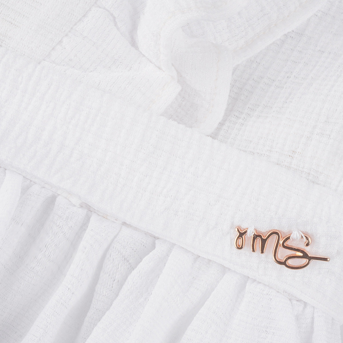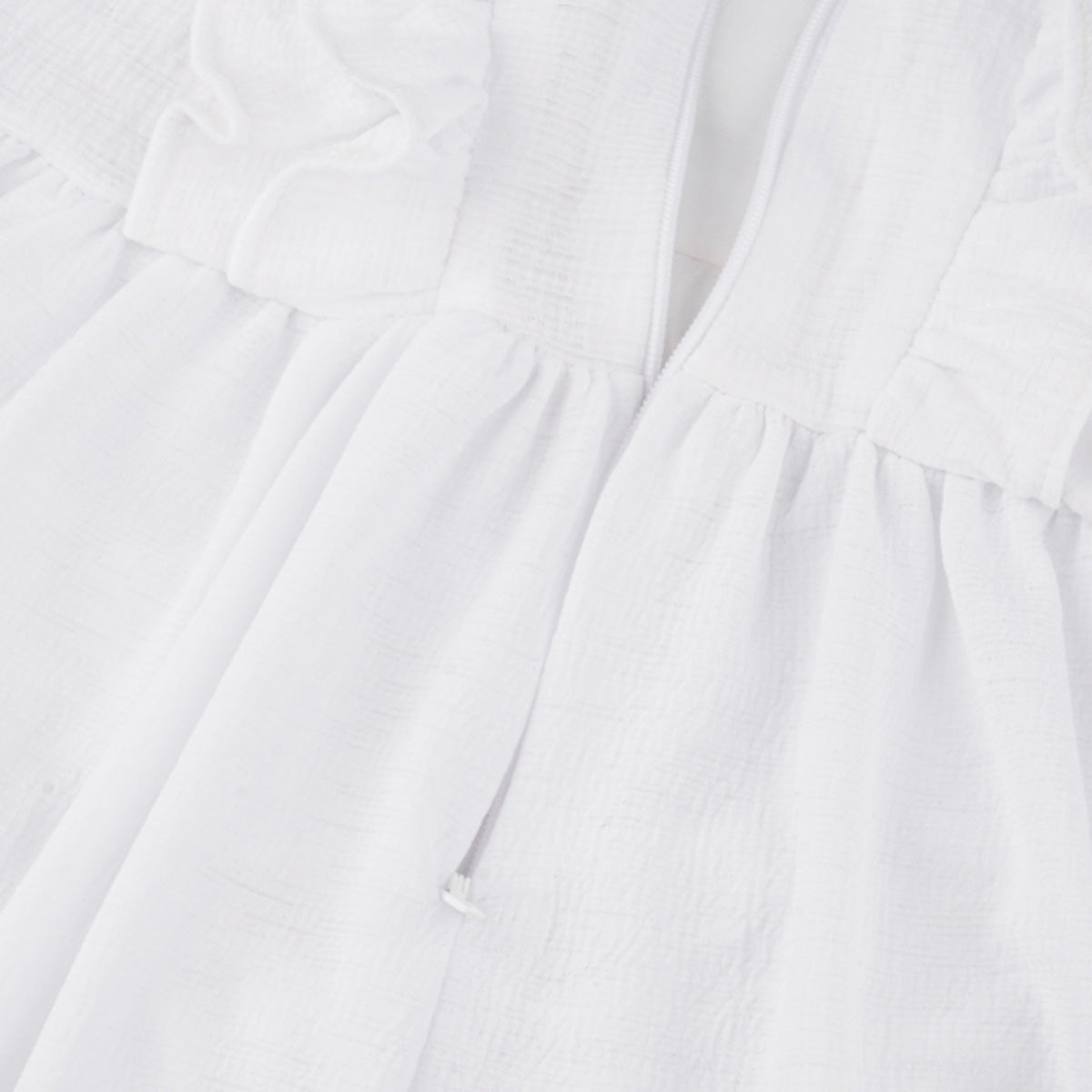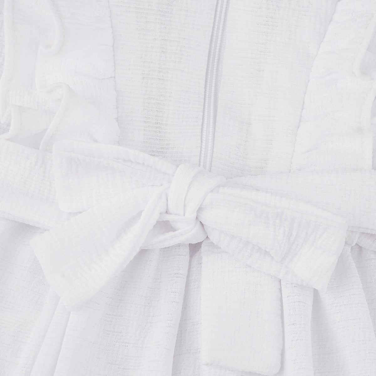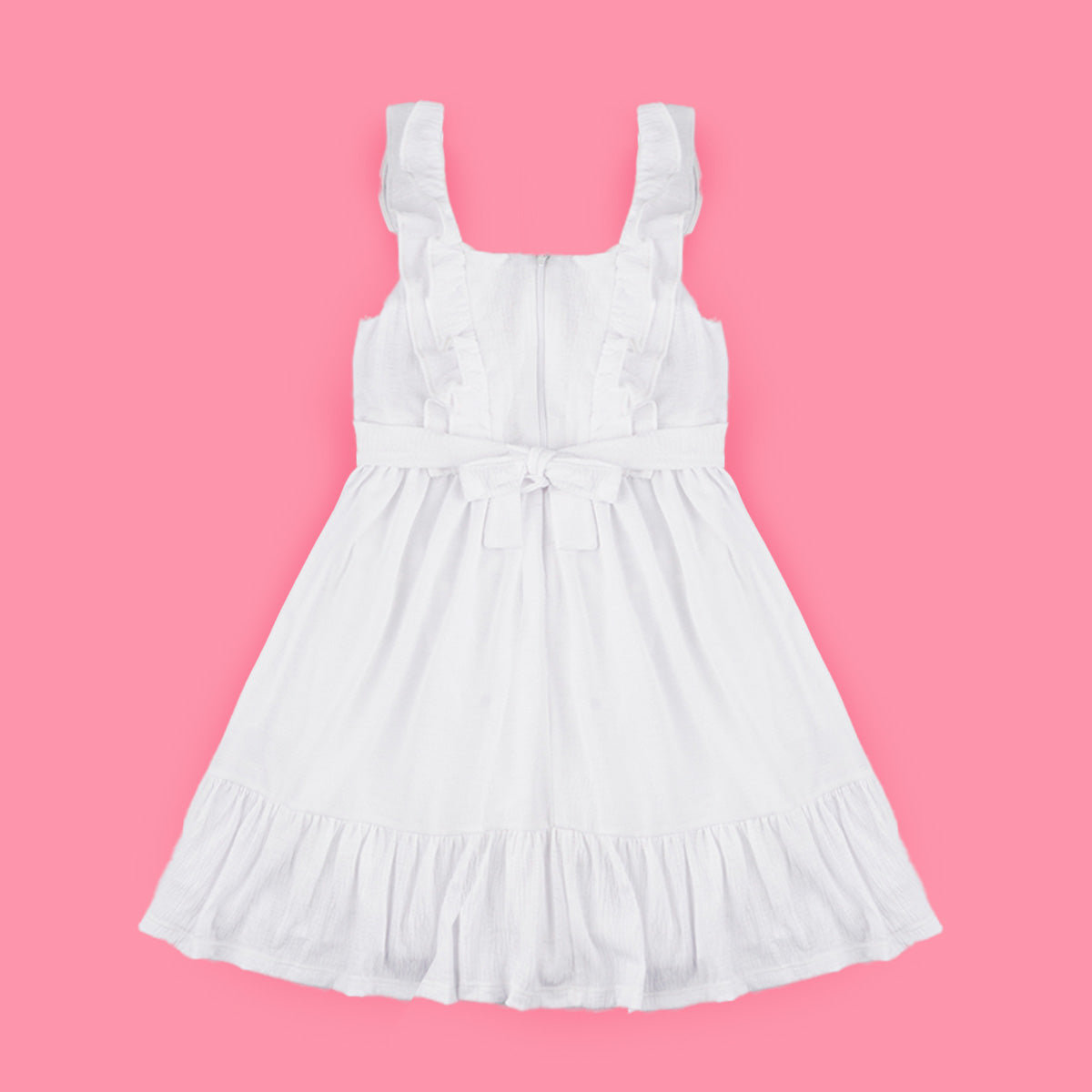 Vestido infantil em tecido poliéster com textura e muitos babados. Vestido com cinto de fita removível para que a menina possa fazer um lindo laço. Vestido infantil com forro branco e fechamento em zíper nas costas. Vestido com babado duplo na parte superior e alças, muito delicado e cheio de personalidade. O vestido tem babado no comprimento e etiqueta da marca em dourado, um arraso.